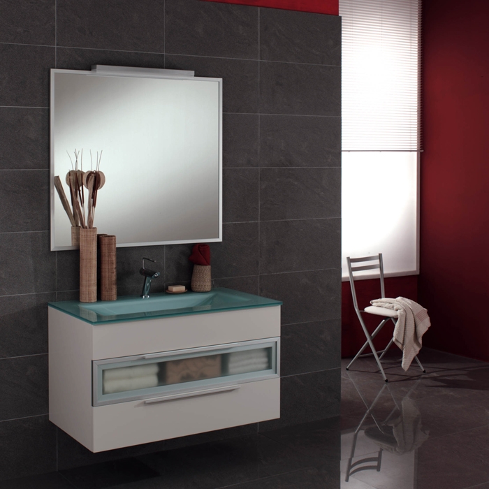 - Miroir avec spots et armoire latérale