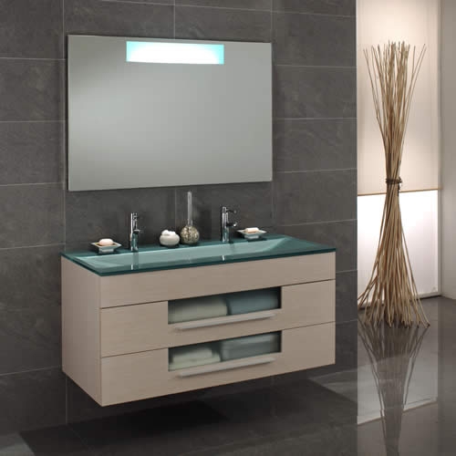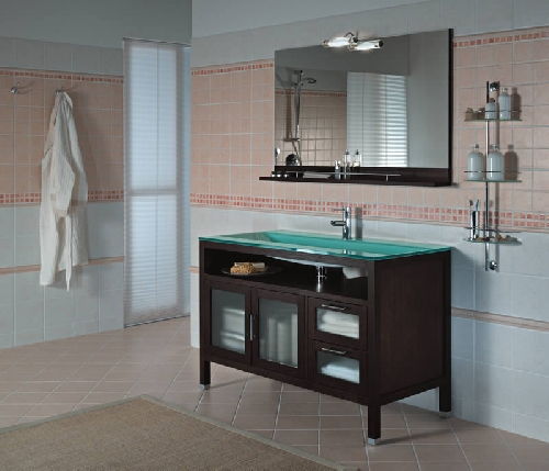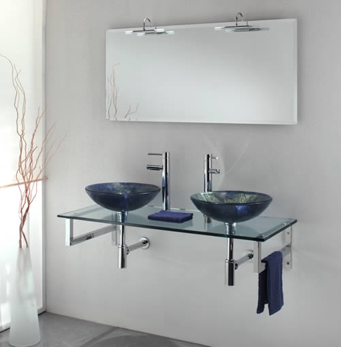 - Vasque double en verre, finition acquamarime ou Vasque en céramique