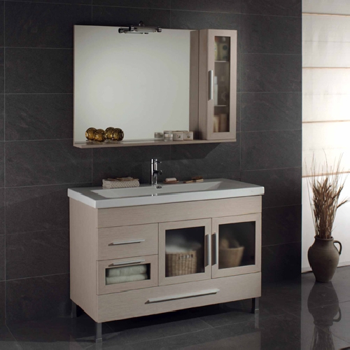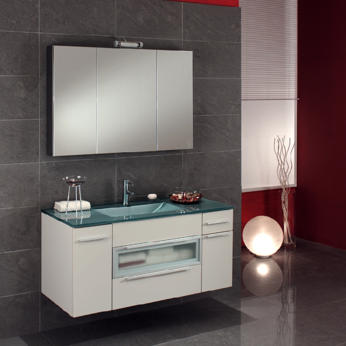 - Miroir 109cm avec spots et armoire latérale