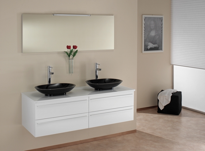 - Plan double vasque en travertin et Vasques en céramique blanche
